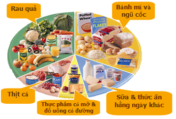 * Thực phẩm chứa tinh bột: cơm, bún, chiếm ¼ còn lại. Nên ăn 1-1½ chén cơm