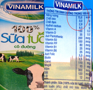 Ví dụ 1: Một hộp sữa tươi VN Milk thể tích 100ml có 70,6 kcal