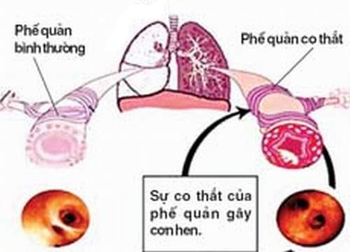 | Hình ảnh phổi bình thường và phổi bị co thắt ở bệnh nhân bị hen. |