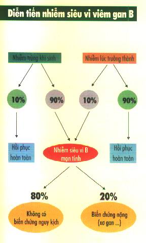 Tuy nhiên, ở trẻ nhiễm siêu vi B từ lúc mới sinh, bệnh diễn biến khác hẳn. Khoảng 90% số trẻ này sẽ trở thành người mang bệnh mạn tính. Giai đoạn này kéo dài nhiều năm, có thể không có biểu hiện lâm sàng, cuối cùng dẫn tới những hậu quả nghiêm trọng như xơ gan, có nước trong ổ bụng, chảy máu đường tiêu hóa do vỡ mạch máu bị giãn, ung thư gan.