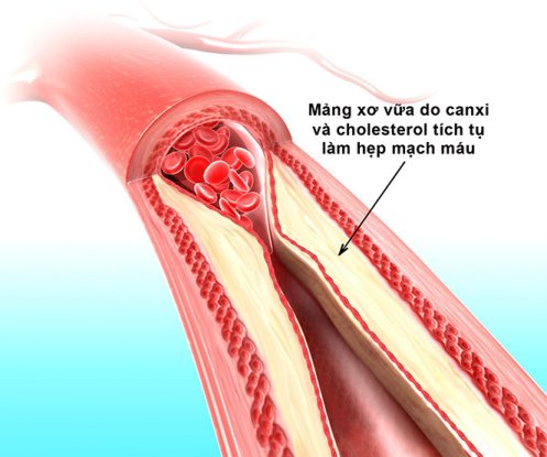 | Thiếu vitamin K2 , canxi không được đưa đến xương và dễ bị lắng đọng trên các mảng xơ vữa động mạch |