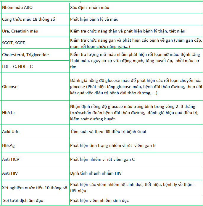 | Một số xét nghiệm trong khám sức khỏe thông thường. |