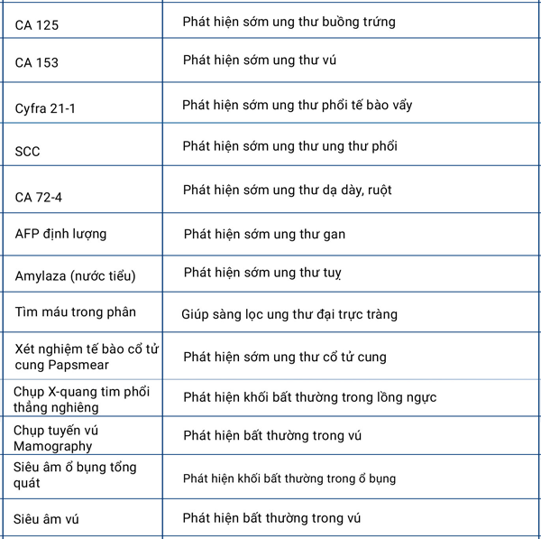 | Một số xét nghiệm trong tầm soát ung thư dành cho nữ. |
