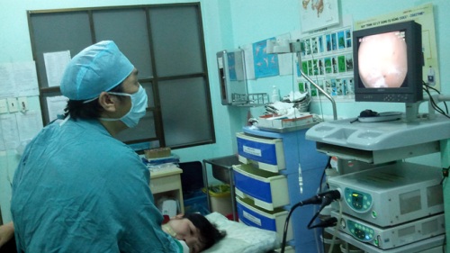 | Bác sĩ nội soi dạ dày cho bệnh nhân tại Bệnh viện Nguyễn Tri Phương - Ảnh: CTV |