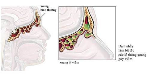 | Dịch nhầy làm bít tắc các lỗ thông xoang gây viêm. |