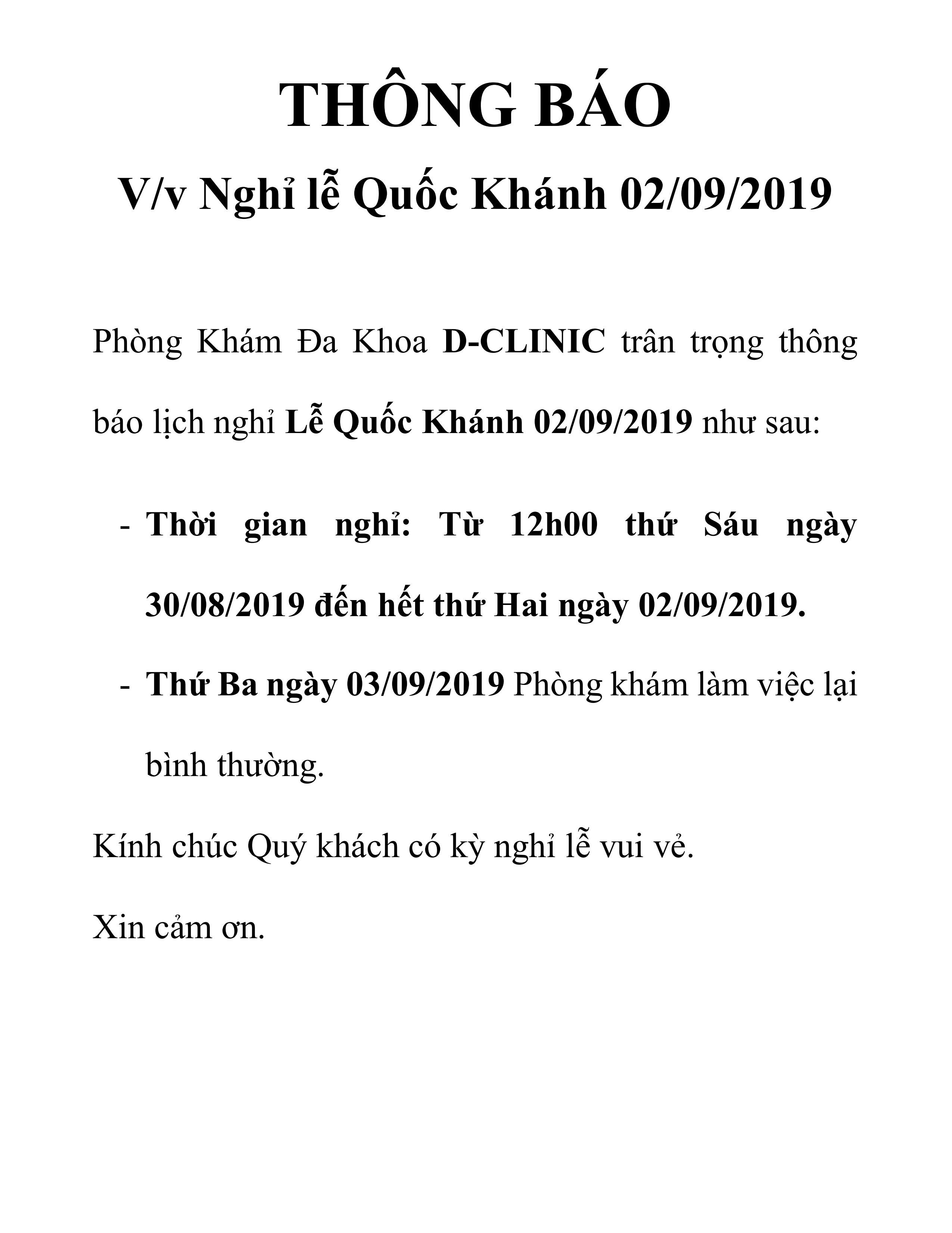 Thông báo >> Thông báo nghỉ lễ 02/09/2019